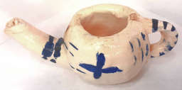 Это моя Гжельная масляная лампа. В крайнем случае игрушечный чайник. Для росписи преподавательница предложила "простые" мазки вида приложить всю кисточку боком. Я считаю, что если бы красил как привык, а не новым упрощённым методом, то получилось бы лучше.