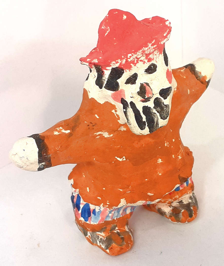 Red clay, white primer with PVA glue, gouache.