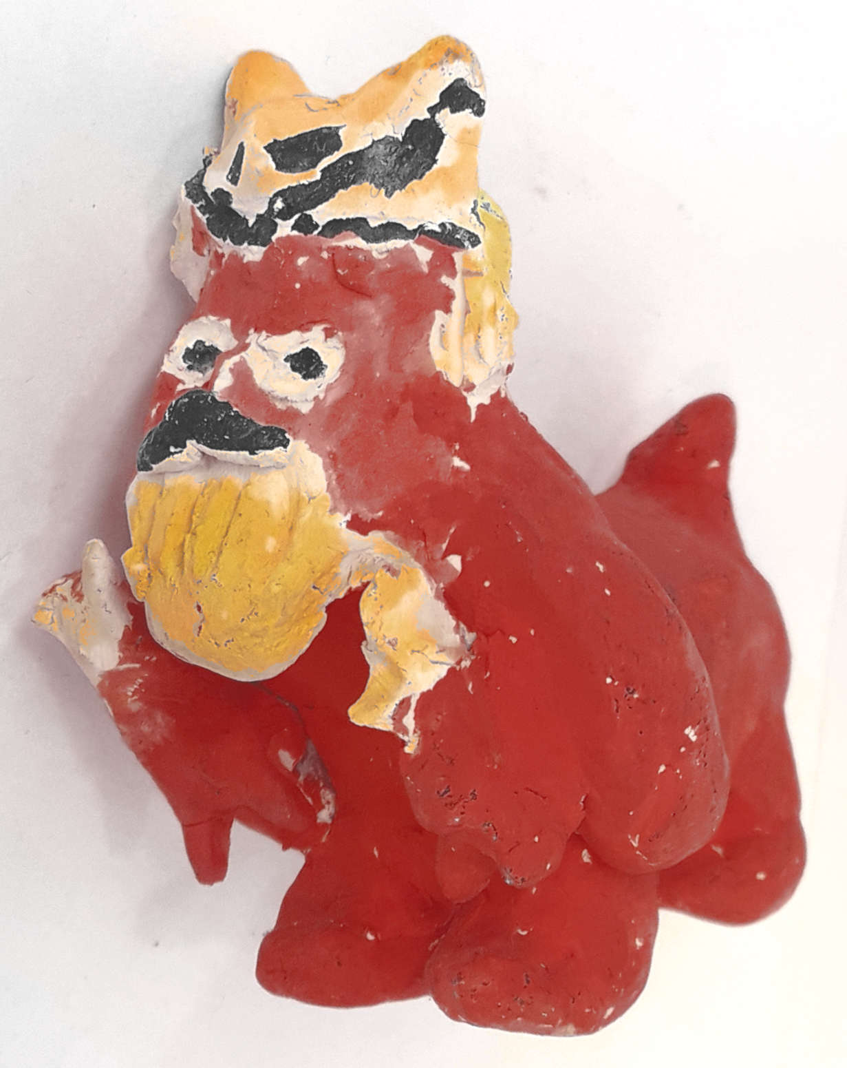Red clay, white primer with PVA glue, gouache.